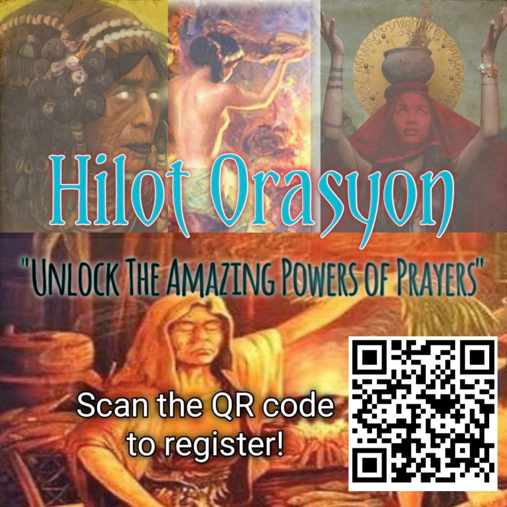 As of this day, we are proud to say that we have retrieved the lost healing method that been taught by Kilibansa who is the Diwata of Healing and through the guidance of Luntiang Aghama we also have developed the Sibulan Adlaw Tala Binabaylan Mystic Oracle which employs Baybayin as a Divinatory/ Diagnostic Method which is under our Tawas Divinatory and Spiritual Diagnostic Studies. And this 13th of April we are going to release our Book on Hilot Orasyon through a webinar which you can register by scanning the QR code.
